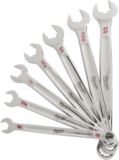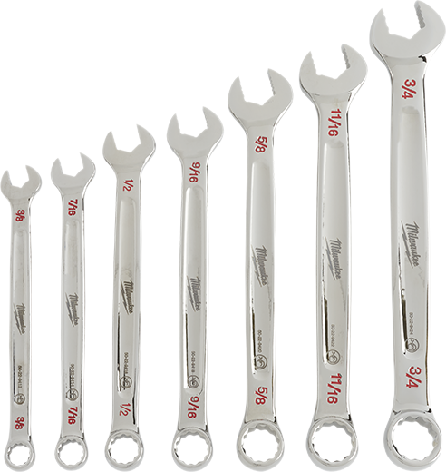 Milwaukee has designed their Combination Wrenches from the ground up, delivering maximum torque and ultimate user comfort. The MAX BITE™ Open-End Grip improves the wrench's grip on nuts and bolts, and the geometry reduces rounding and stripping. MAX BITE™ offers 25% More Torque than competitive wrench designs. The Comfortable I-Beam Handle Design allows superior user comfort, even while applying high torque. Milwaukee wrenches feature Ink-Filled Size Labels for easy size identification, and quick distinction between SAE and metric sets. The 7pc kits come in a portable, locking storage tray, offering organization both on and off the jobsite. Standing behind their products, Milwaukee offers a Lifetime Guarantee on all of their Combination Wrench Sets.